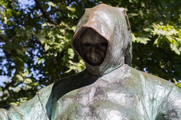 According to history, the author of the statue depicted him as he looked in everyday life. The wide cloak and hood on the face reveal a truly mysterious personality.