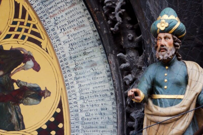 On the sides of the upper dial there are four sculptures: the first - a man with a mirror - personifies respect, the second - a man with a bag of money in his hand - greed, the third - a skeleton - a symbol of death. He holds an hourglass in his hand, which suggests that nothing is permanent. The fourth is a Turk in a turban with a musical instrument. According to one version, this is a symbol of the fulfillment of desires, and according to another - the Turkish threat to the Roman Empire, which included the Czech Republic.
