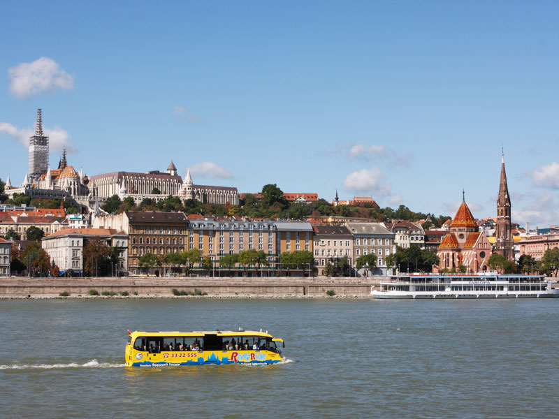 The amphibious bus has been operating in Budapest since 2009 and undoubtedly adds to the charm of the Hungarian capital. The attraction begins at the building of the Academy of Sciences - Istvan Szechen Square, 7/8. Here you can buy tickets half an hour before the start of the tour.