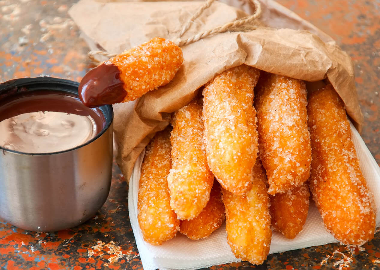 Churros - is a dessert. It is made from sweet boiled dough that is baked in the oven. They are served with coffee with milk or dipped in melted chocolate: