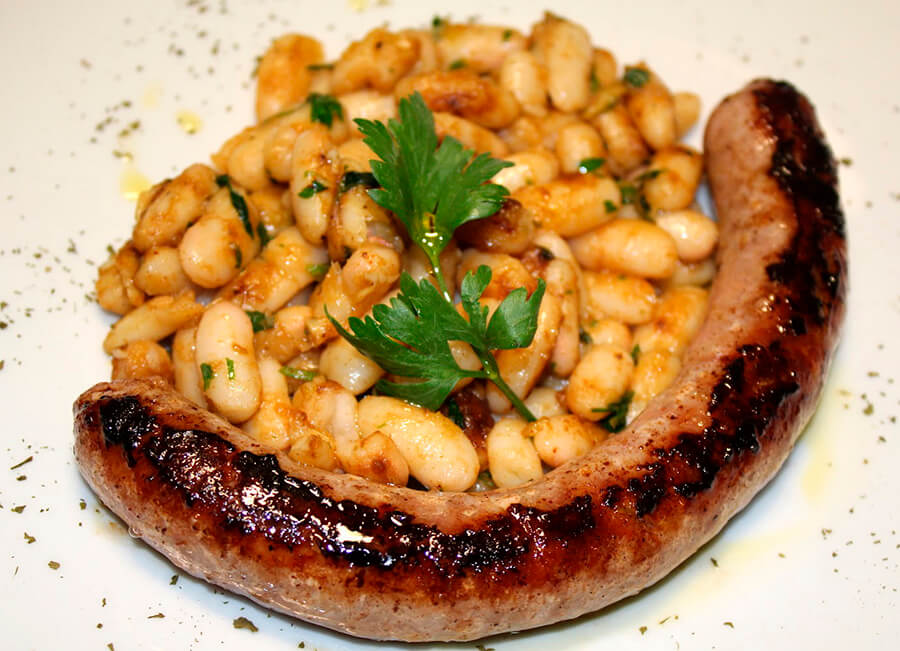 Butifarra - meat sausage with white beans, fried potatoes or with salad: