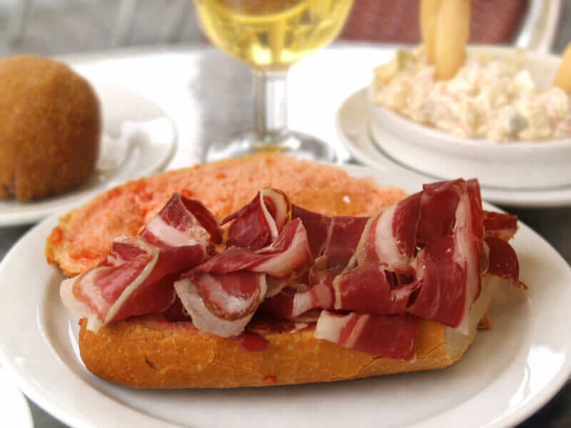 Tapas - any breakfast with beer or wine. For example, fried green peppers, grilled cuttlefish, fried squid, grilled fish with vegetables, salted cod on bread, etc.: