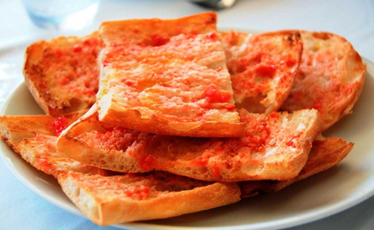 Pa emb tomatek (pa amb tomàquet) - fried bread with tomatoes . Rub garlic and tomatoes onto the bread, add olive oil and salt. Use as a side dish: