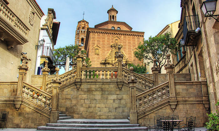 Like the Magic Fountains of Montjuic, the Spanish Village was created in connection with the 1929 International Exhibition. It represents natural, life-size or slightly reduced copies of more than a hundred historical monuments from different regions of Spain. Houses, monasteries, castles and fortresses typical of Catalonia, Aragon, Castile and other regions are located on an area of 40 thousand square meters.