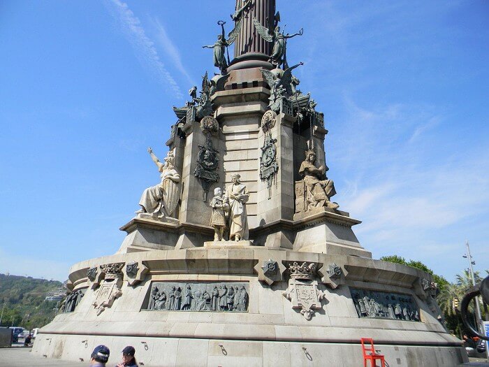 The boulevard ends at the Portal de la Pau (Plaça del Portal de la Pau), which means “Gateway of the World”. In the center, at the intersection of Ramble and Columbus boulevards, there is a 60-meter monument on which stands a 7-meter statue of Christopher Columbus. At an altitude of 50 meters there is an observation deck where an elevator will take you. It will cost you 6 euros. The lower part of the monument depicts Columbus's preparations for the journey and those who helped him (cartographer, priest, ship captain) and the goddess Nike.