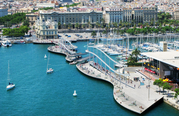 In fact, this is not a street, but a pedestrian bridge that will lead you to the Maremagnum shopping center, located in the waters of Barcelona harbor.
