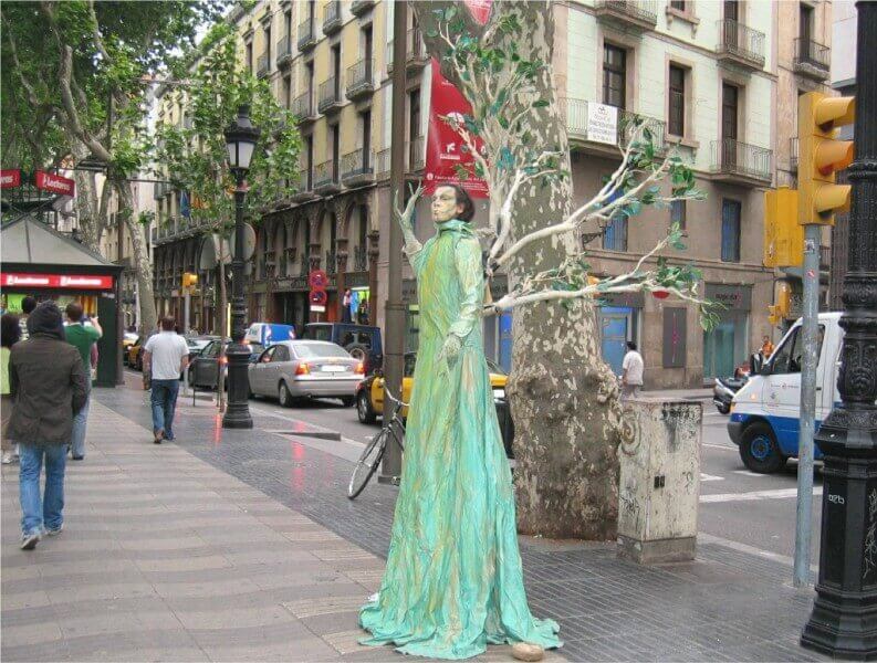 The pedestrian street La Rambla is an iconic place in Barcelona, its soul and heart. Local bohemia, modern youth and enthusiastic tourists mix here. It is unlikely that you will find a traveler who came to Barcelona and did not visit La Rambla. This has long been a favorite street of locals and city guests, and a walk along it has become a necessary ritual. Whom you won't see on La Rambla anymore: curious tourists, native Barcelonans, flower and souvenir sellers, freelance artists, living sculptures, musicians.
