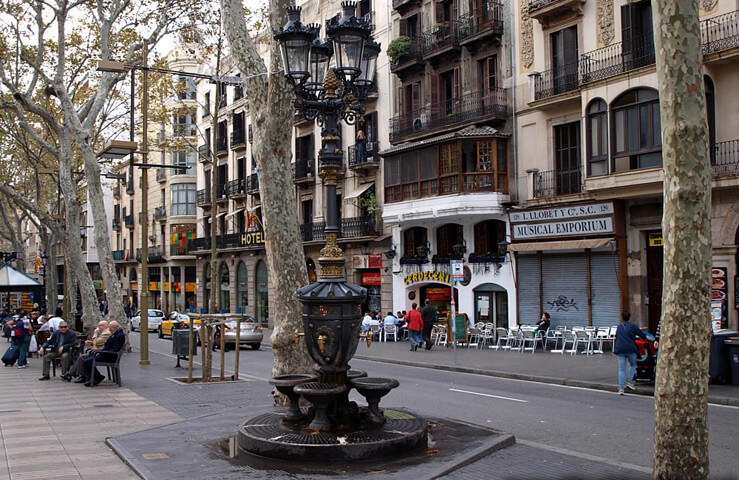 The first boulevard from which the Rambla begins. Located next to Plaza Catalunya. The name was given in honor of a cast iron drinking vessel popular among tourists from the 19th century. They say that whoever drinks water from there will love Barcelona forever and will definitely return there.