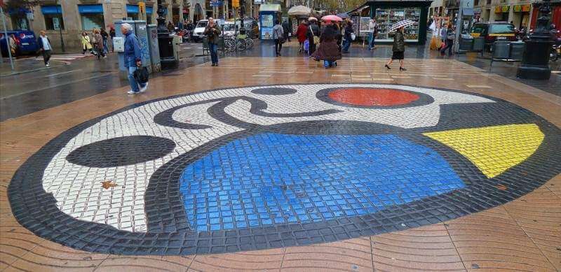 The Boulevard of Flowers ends with Pla de l'Os, the center of which was lined with colorful mosaics based on the idea of the famous Catalan artist Joan Miró in 1970.