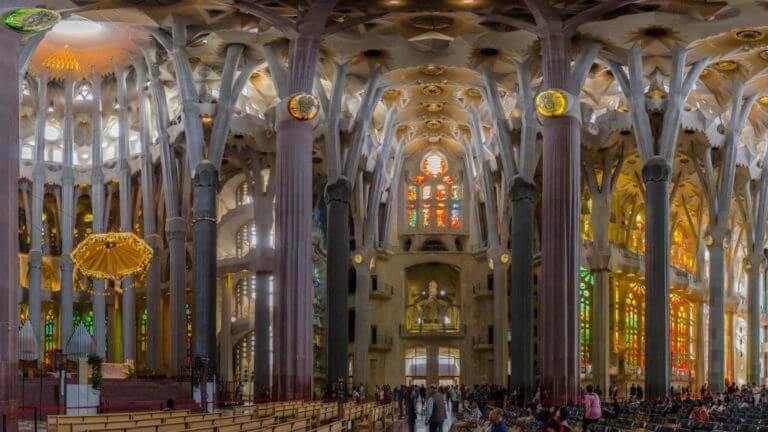 The interior of the Sagrada Familia differs from the interior decoration of traditional churches. Gaudi wanted to achieve complete unity with nature, so the Sagrada Familia from the inside looks like a fairy-tale forest, flooded with sunlight, and not a classical church.