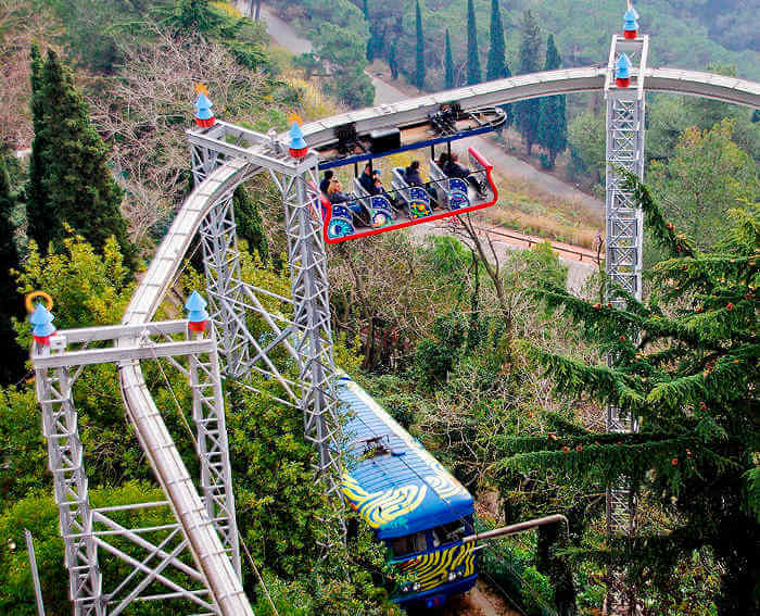 This tram is intended for tourists. The length of the line is 1276 meters, the tram speed is 13 km/h, the road slope is 8%, the elevation difference is 93 meters (rise from 137 meters to 230 meters). Open from 10:00 to 18:00 or 19:30 (depending on the season).