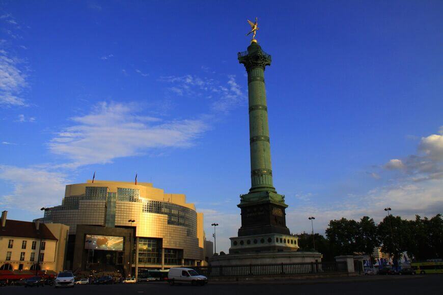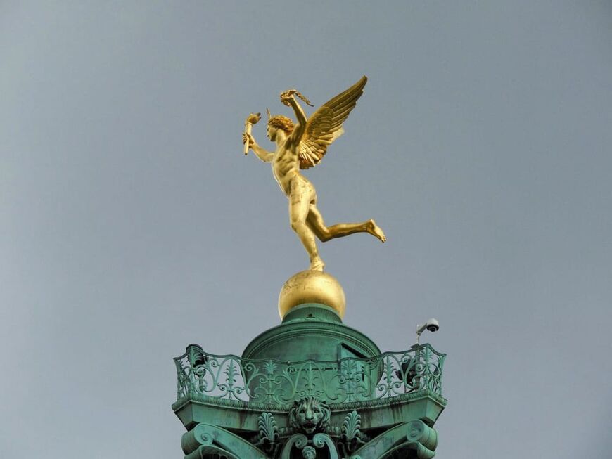 The July Column was erected on the square by order of Emperor Louis-Philippe I. It is cast from steel and bronze. Its height is 52 meters, weight is 170 tons. The opening took place in 1840. The column became a symbol of the July Revolution: then Charles X was overthrown and Louis-Philippe I became the head of the country.