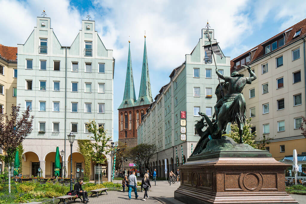Next to Alexanderplatz is the historical quarter of Nikolaifürtel, where is located the oldest Church of St. Nicholas (Nikolaikirche) (XIII century) and statue of St. George fighting a dragon: