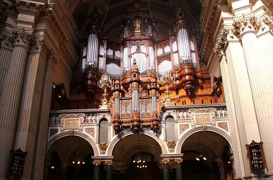 On the opposite side of the organ are the luxurious gilded sarcophagi of Grand Duke Friedrich Wilhelm and his second wife Dorothea. Almost all representatives of the ruling dynasty are buried in the Berlin Cathedral. There are 94 sarcophagi in the crypt from XV-XX centuries.