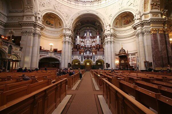 Berlin Cathedral is the largest evangelical church in Germany, located in the center of the capital, on Museum Island. This is not a cathedral, although it is officially called that, and is often compared to the entrance gate to Museum Island. The impressive architecture of the Berlin Cathedral attracts tourists from many countries around the world. About 720 thousand people visit it annually. The temple can accommodate more than 2000 pilgrims. During an important service, many believers always gathered in the church, especially during Easter, when the Kaiser and his family were always there.