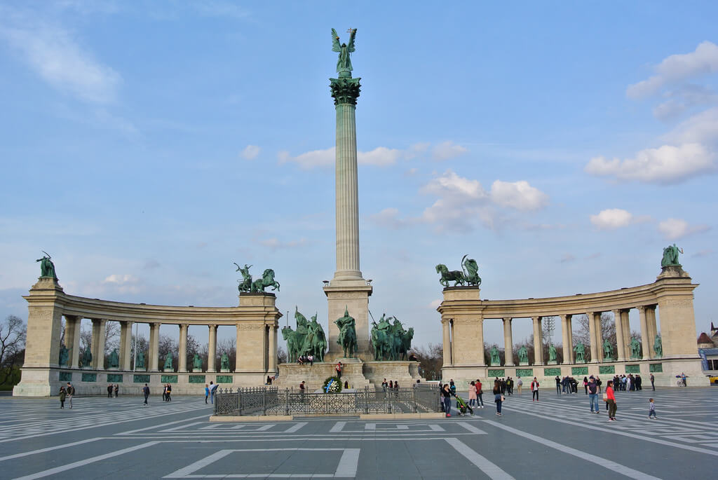 On Andrássy Avenue there is Heroes Square with two statues. The column erected in the center is dedicated to the millennium of the resettlement of the Magyars. At its top is the figure of the Archangel Gabriel, and below are the leaders of the seven Magyar tribes, including Prince Arpad, who founded the royal dynasty of the same name.