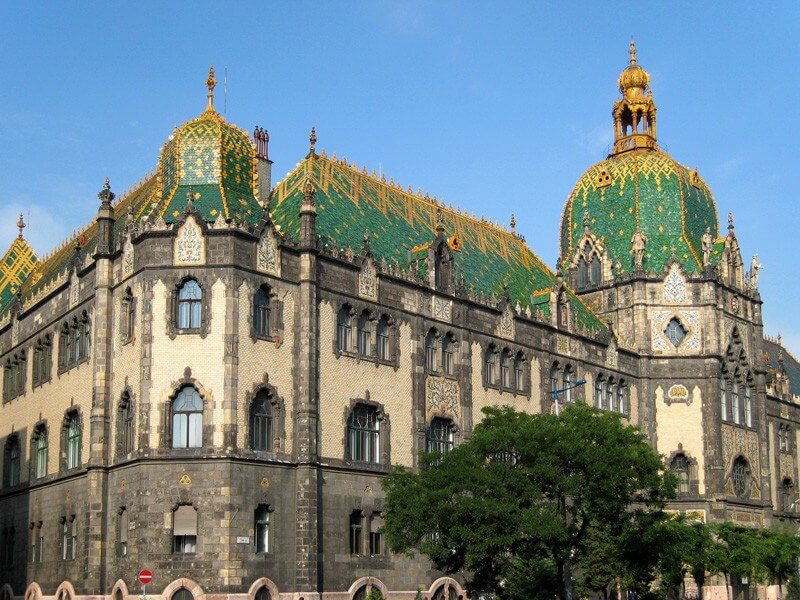 This museum was also built in 1896 in honor of the 1000th anniversary of Hungarian statehood. It combines many cultural elements. The roof is decorated with emerald-colored tiles from the Zsolnay factory.