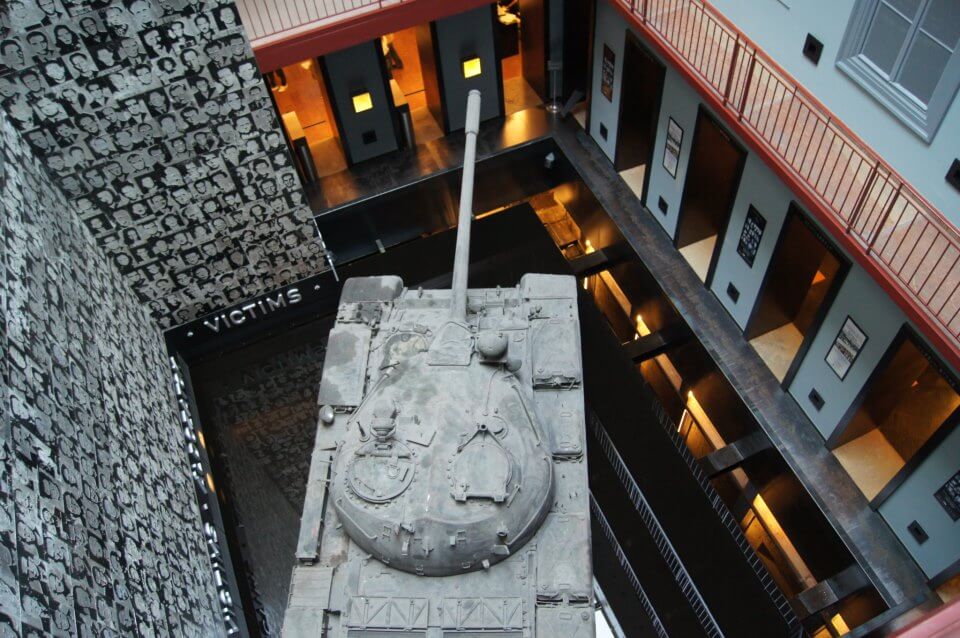 Inside, on three floors, there are halls where exhibitions of Nazi and communist terror are exhibited. The first occupies several rooms, the second - almost the entire building. There is a real Soviet tank in the atrium of the museum, and photographs of victims of terror are pasted on the walls.