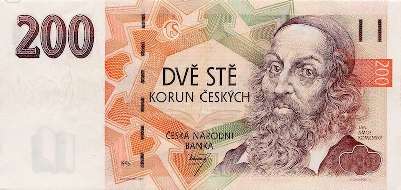 200 crowns: obverse - Jan Amos Kamensky: Czech educator, humanist, writer, religious and public figure.