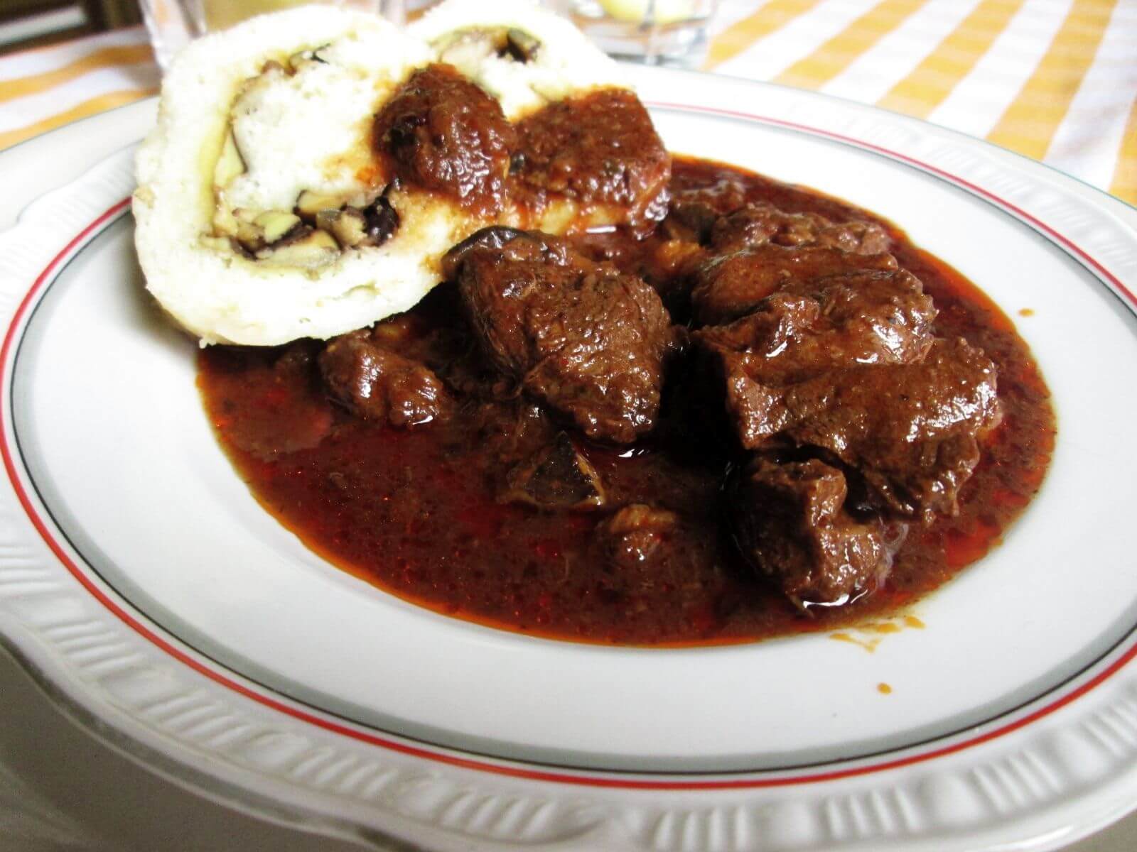 Czech goulash (Český guláš) is a dish for those who like to eat heartily. Ingredients: beef, onion, paprika, onion, butter, black pepper, flour, salt and beer or water: