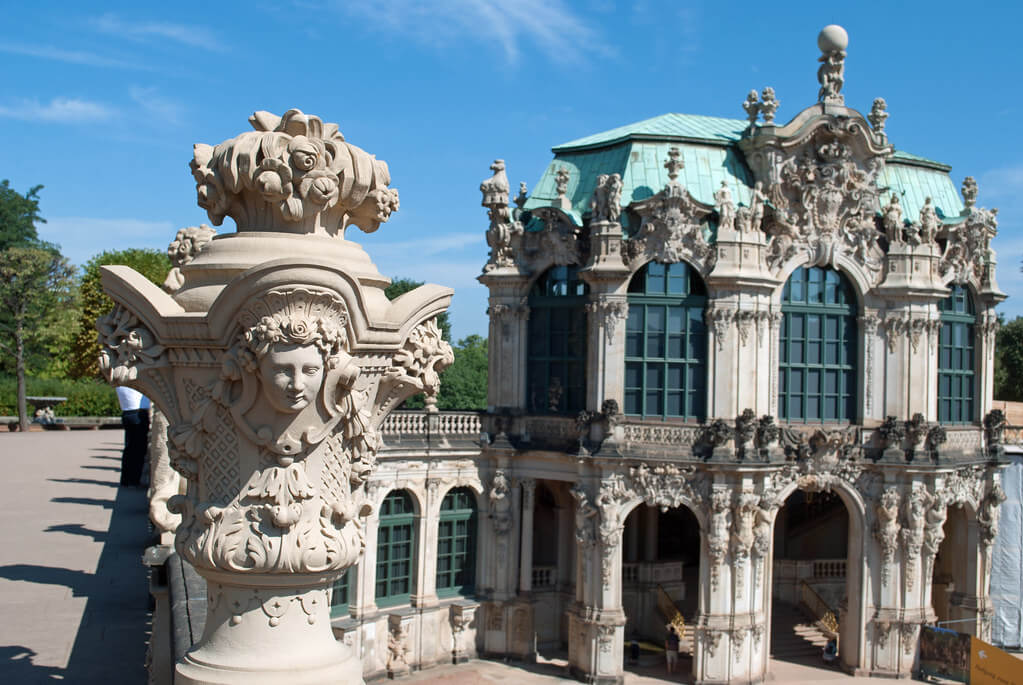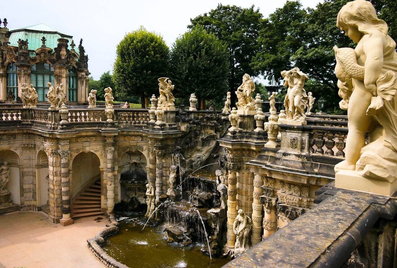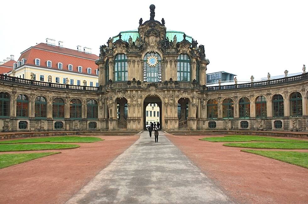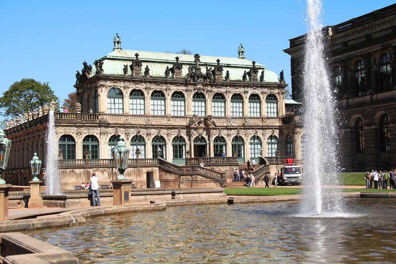 Zwinger Palace consists of pavilions, galleries, museums and fountains. I recommend starting watching clockwise. If you enter the courtyard from Theaterplatz (Theater Square) and pass by the Armory Hall, you will first encounter the “German Pavilion”.