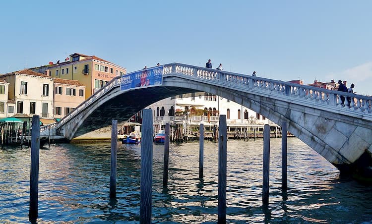 The Scalzi Bridge is the same as the “barefoot bridge” (according to the report, poor people lived near it and did not even have enough money to buy shoes), located slightly to the left of the train station and connects the areas of Canareggio and Santa Croce. This is the first thing tourists see when leaving the station. This bridge was built in 1934 and replaced an old iron bridge. Its height is 7 meters, length is 40 meters.