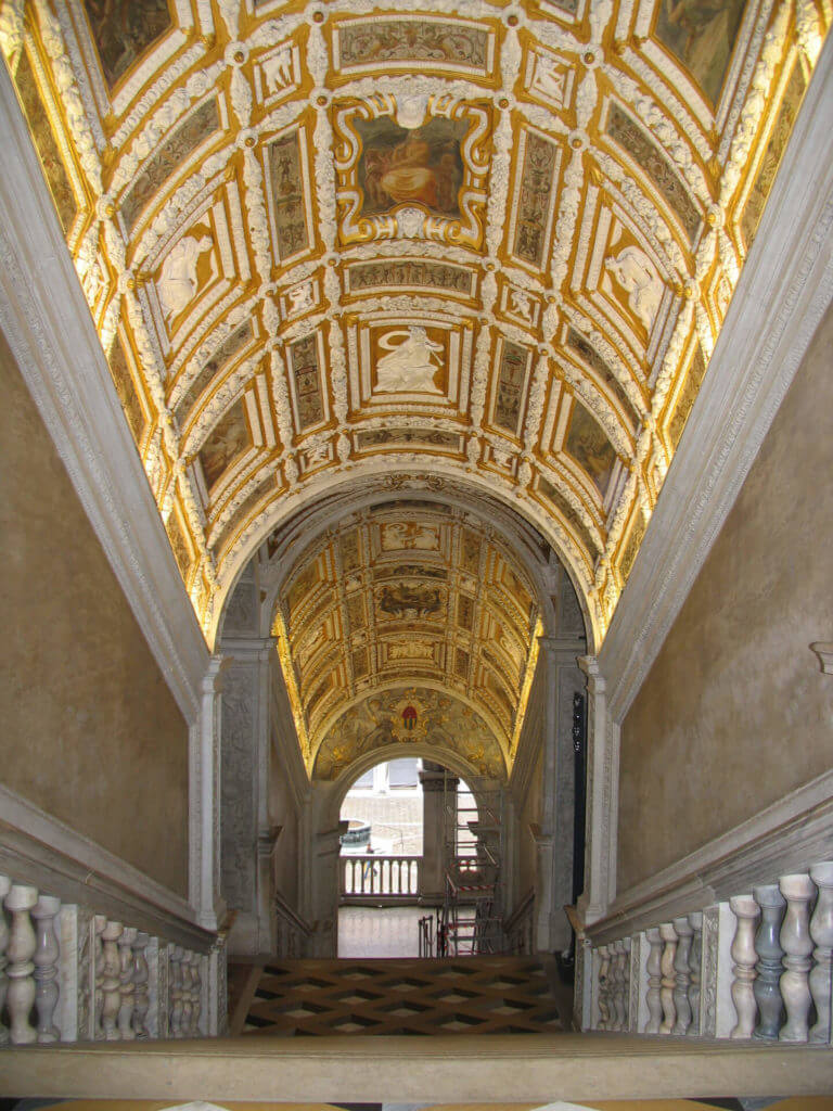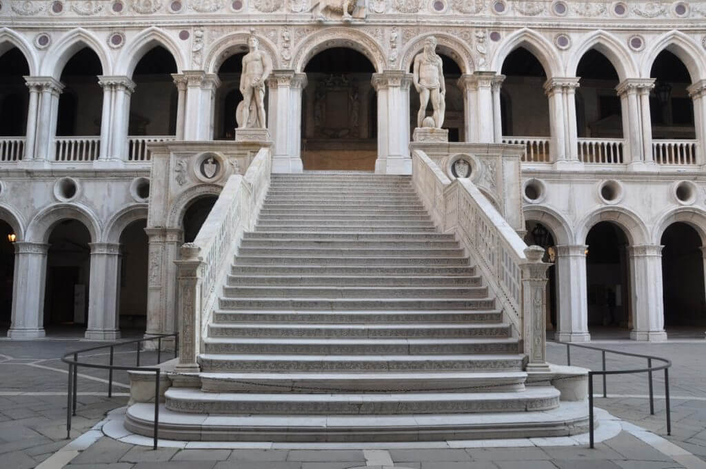 At the bottom of the stairs are two marble statues of Mars and Neptune, symbolizing the strength of Venice both on land and sea.