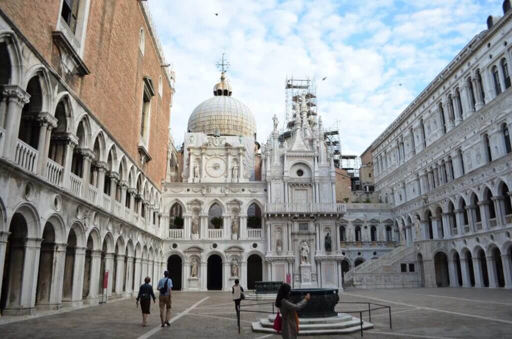 The "paper door" leads through the Foscari arch into the large central courtyard.