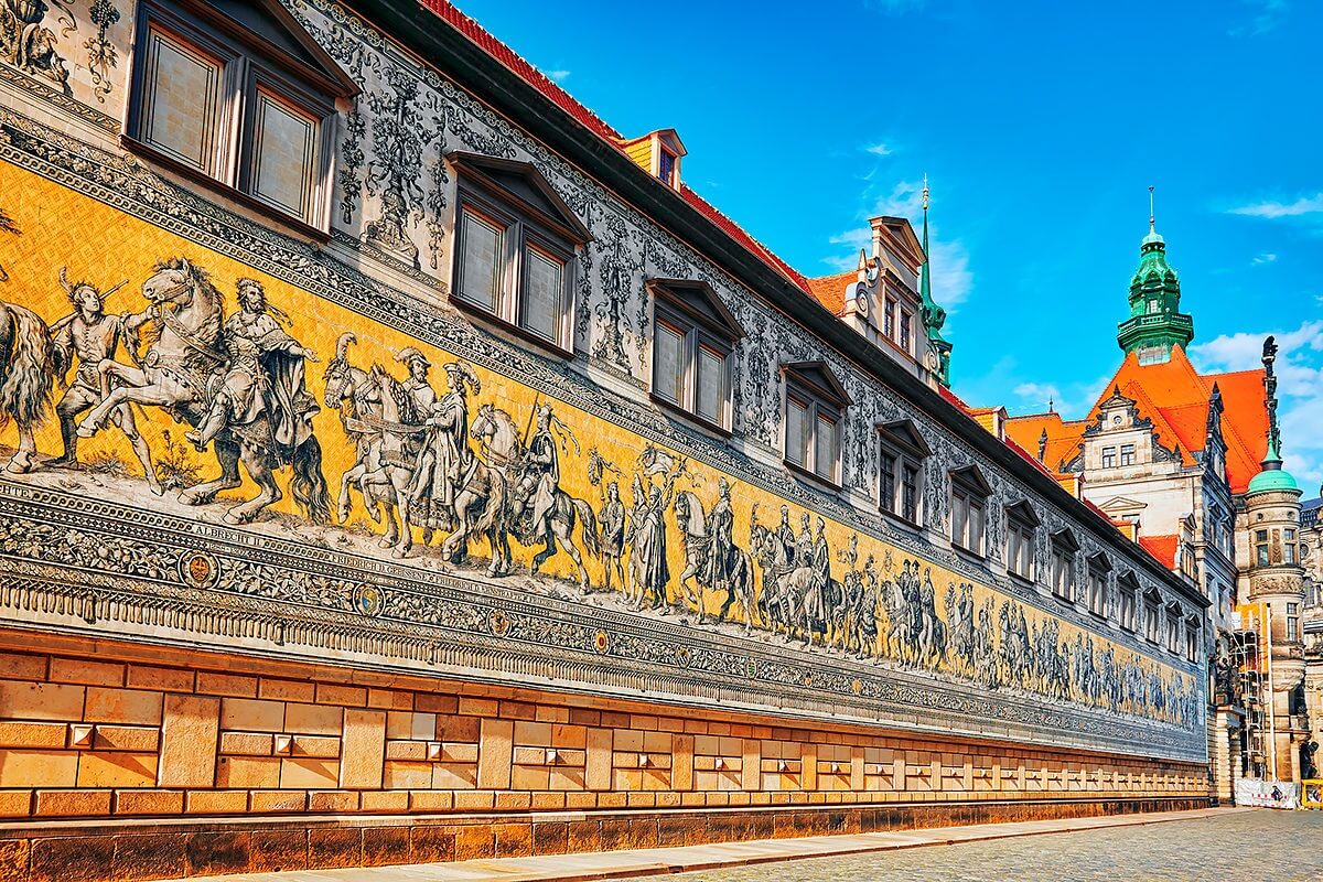 If you pass under the arch at the end of Schlobstraße, on the right you will see the world's largest panel called "The Nobles Procession" ("Procession of the Nobles"):