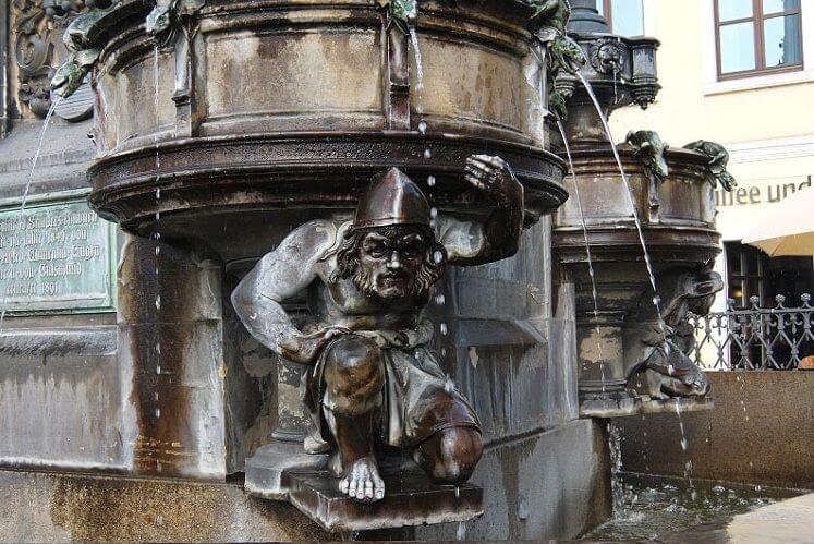 If we go back a little and walk between the Taschenberg Palace and the castle residence tower, we will come out to Post Square, where the “cholera fountain” was erected. In the second half of the 19th century, a cholera epidemic spread in Saxony, which Dresden narrowly escaped. The fountain was installed as a sign of gratitude. Its height is 18 meters.