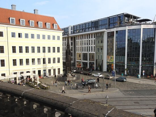 We will pass the Altmarkt square, where the huge shopping center is located, cross the street Wilsdrufferstraße and follow the Schlobstraße. Soon to our left we will see the Taschenberg Palace XVIII century.