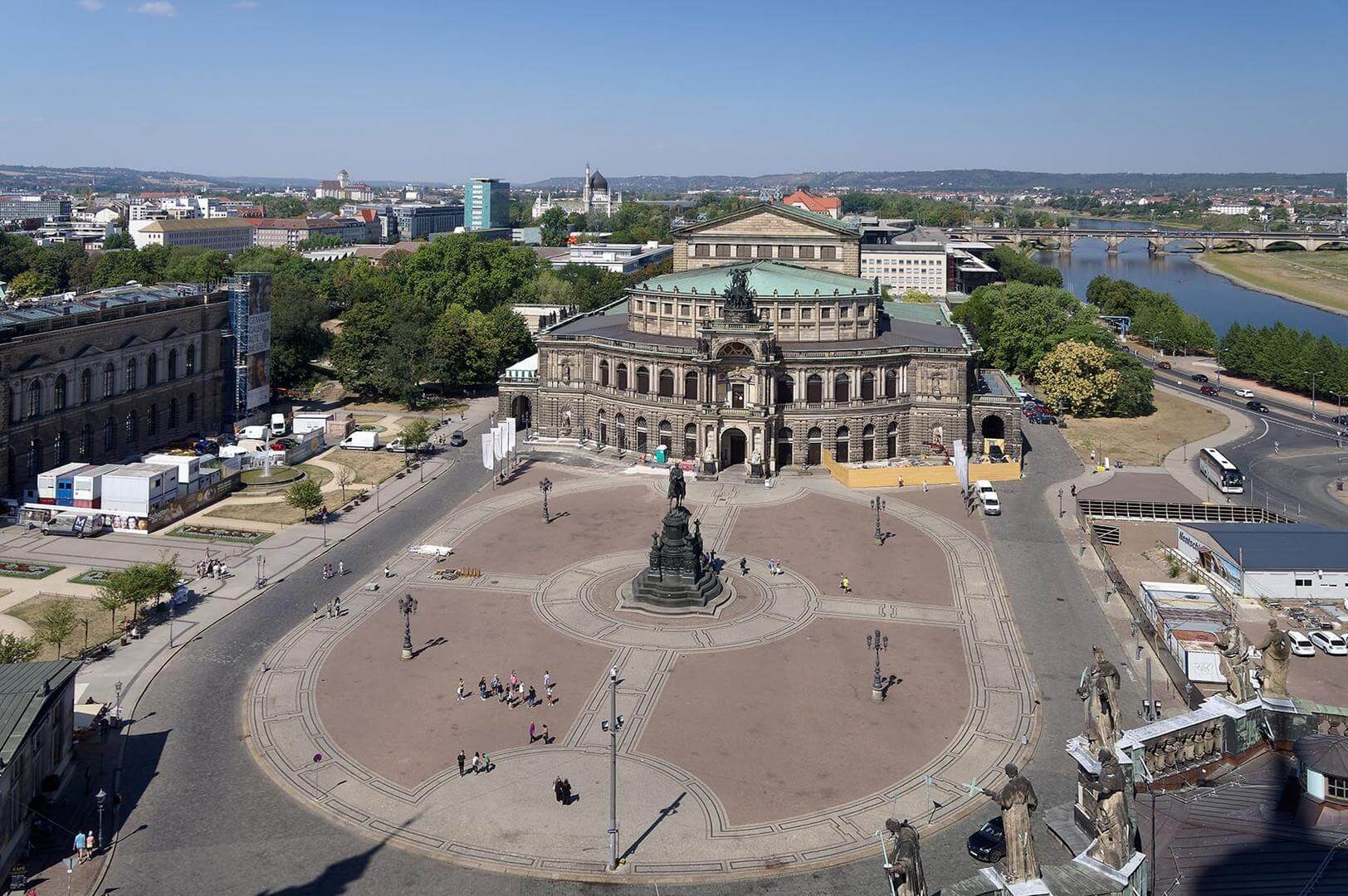Your attention will be drawn to the statue of King Johann of Saxony on horseback and the Zemper Opera: