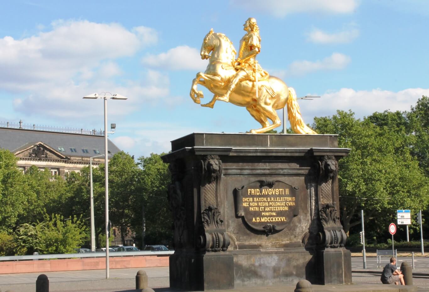 If you cross the Elbe River from the Hofkirche using the Augustus Bridge (Augustusbrücke) - this is where the Brühl Terrace begins - and walk on foot, you will see "Golden Horseman" is the famous statue of King Augustus the Strong on horseback.
