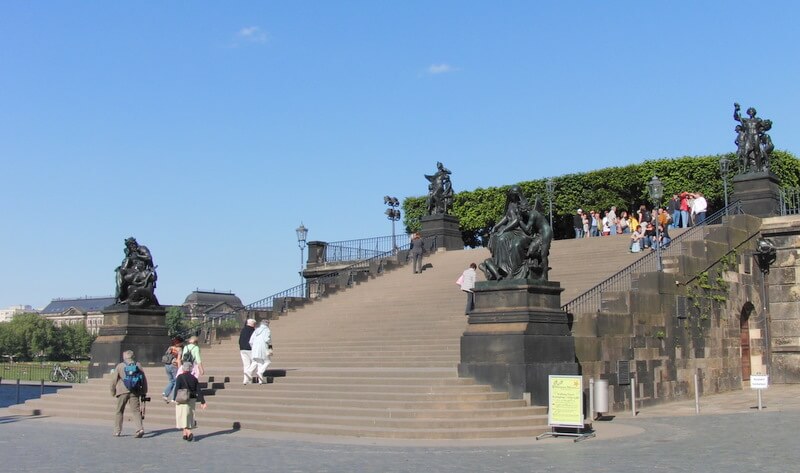 Among the attractions of the Brühl Terrace, we highlight the staircase with 4 statues.