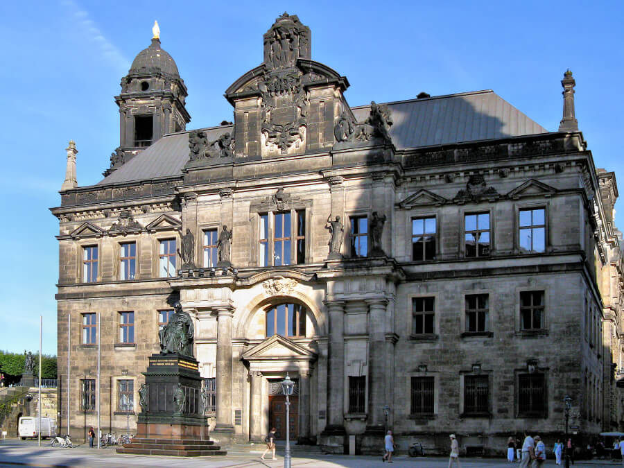 Between the staircase and the previously mentioned panel is the House of the Saxon Officials and a statue of the Saxon king Frederick AugustusI. Currently, the building houses the Department for the Protection of Architectural Monuments and the German Photo Library.