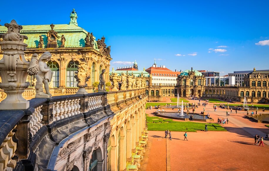 Now let's cross Sophienstraße and approach Zwinger Palace. This architectural ensemble of the 18th century is an outstanding Baroque building and the main attraction of the city.