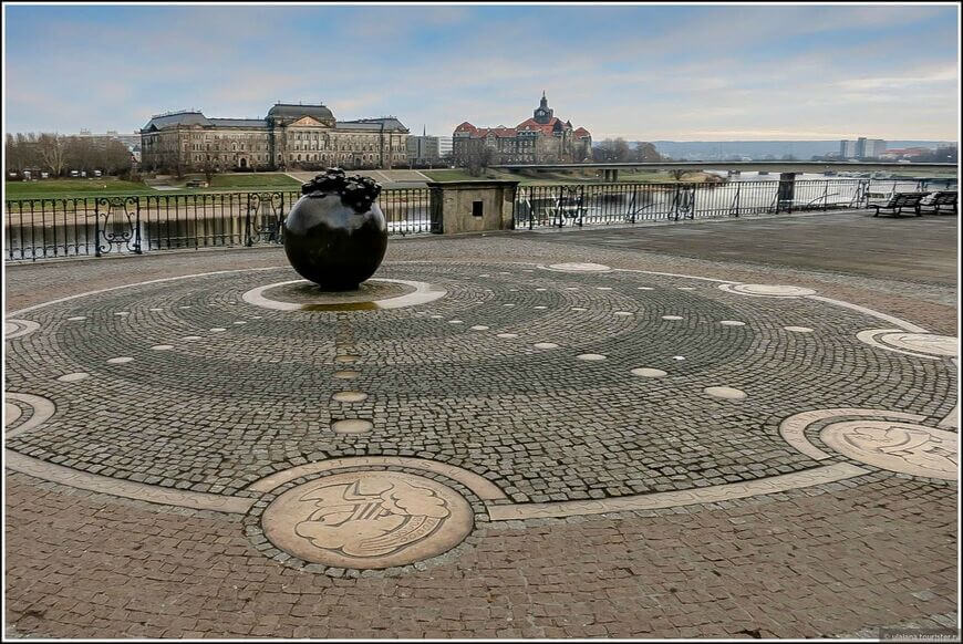Behind the palace you can see the sculpture “Bastions of the Seven Planets”. Until the XVIII century, each bastion of the defensive wall of Dresden bore the name of the planet. Cracked earth is placed in the middle of the composition, indicating the threat of destruction of our planet.