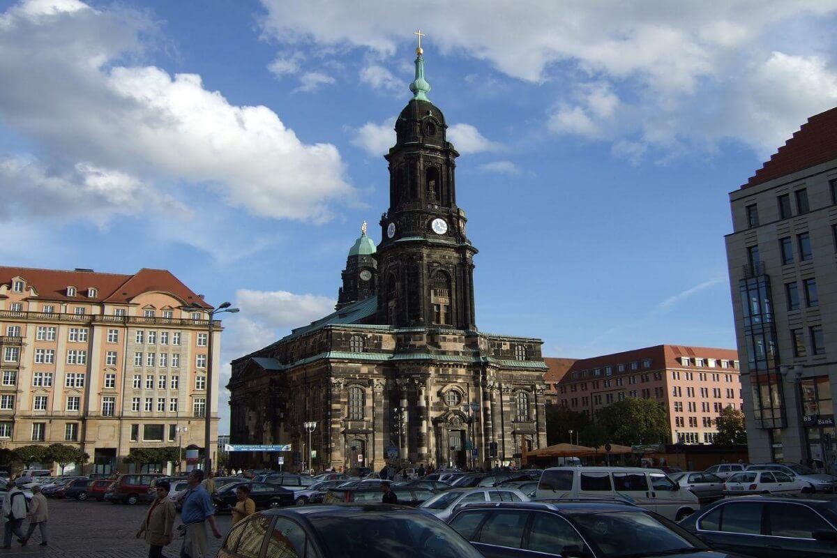 If you cross Sophienstraße again, you will end up at the Hofkirche. Hofkirche is the cathedral of Dresden.