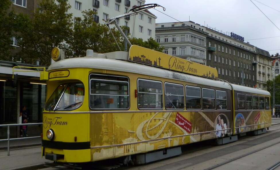 The tram has been running along the ring boulevard, or Ringstrasse, since 1913. Currently it is a yellow tram, which the Viennese affectionately call “Bim”.