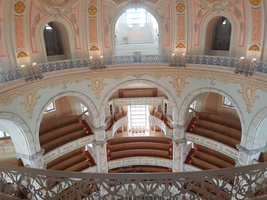 Despite the relatively small size of the Frauenkirche, it can accommodate a large number of people, since the seating is arranged in tiers on several floors.