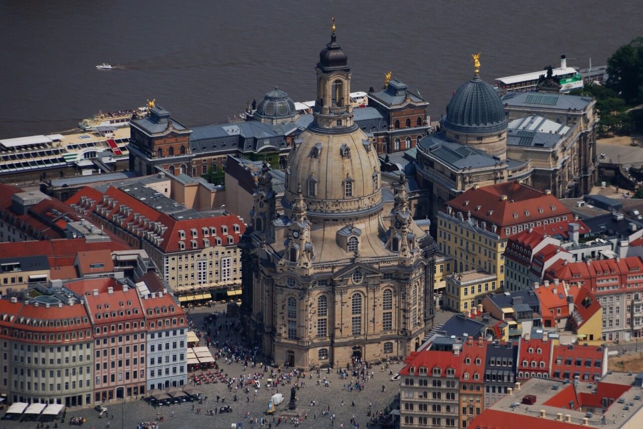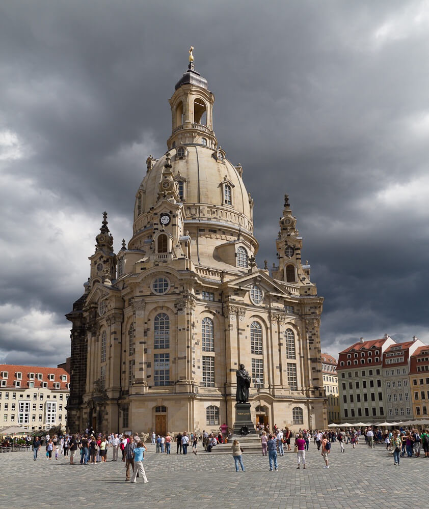 Frauenkirche is decorated with a huge dome. It is made entirely of sandstone and weighs 12 tons. Height 24 meters, diameter 26 meters. Its concave base resembles a bell, which is why the Frauenkirche is also called the “stone bell.”