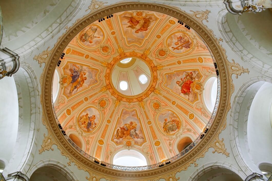 The inside of the dome is painted with images of the evangelists - John, Matthew, Mark and Luke, as well as allegories of faith, hope, love and mercy.