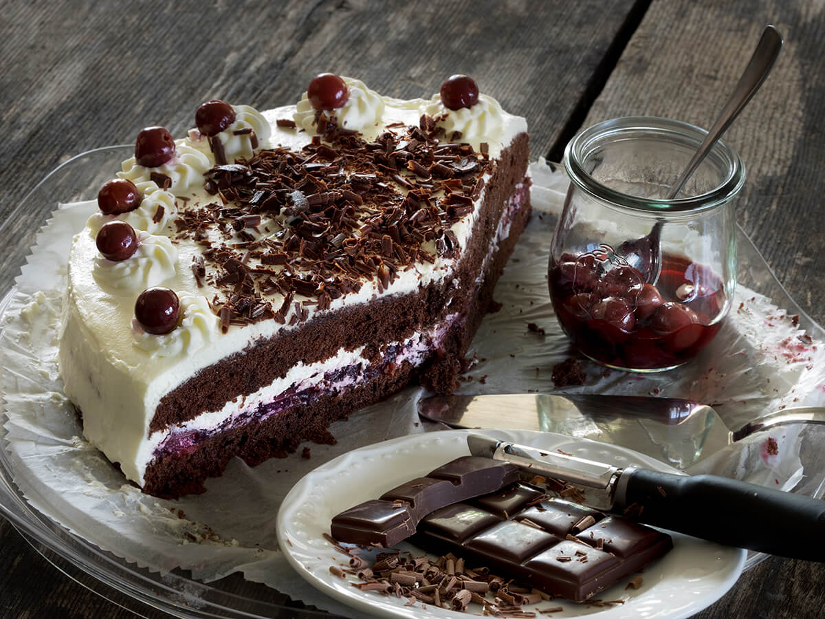 Black Forest gâteau (Schwarzwaelder Kirschtorte) - Black Forest cherry cake. A very popular delicious dessert:
