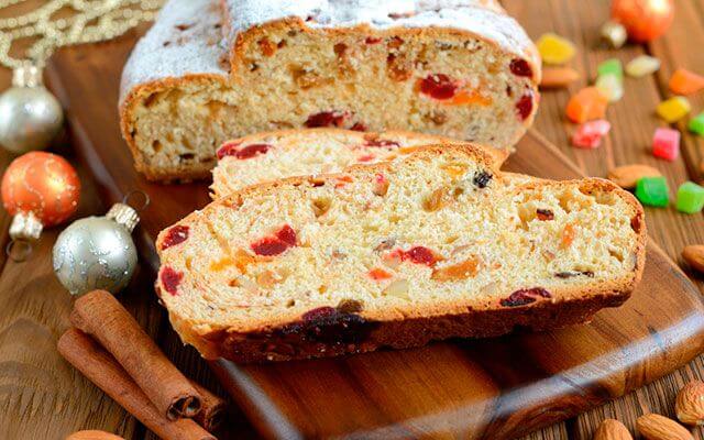 Dresden Stollen (Dresdner Stollen) - dish XV centuries. Ingredients: flour, walnuts, marzipan, raisins, candied fruits, spices: