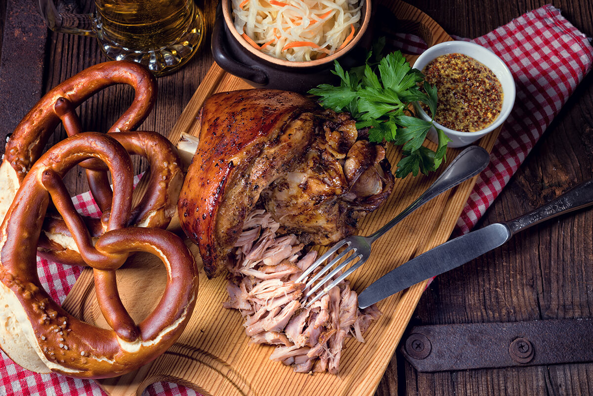 Sauerbraten - literally - “sour fried meat”. Ingredients: beef or pork, wine vinegar, red wine, spices: