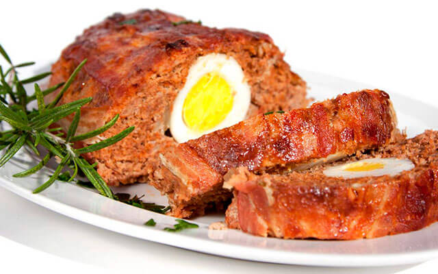 Fake rabbit (Falscher Hase) - ingredients: minced pork, onion , potatoes, hard-boiled egg: