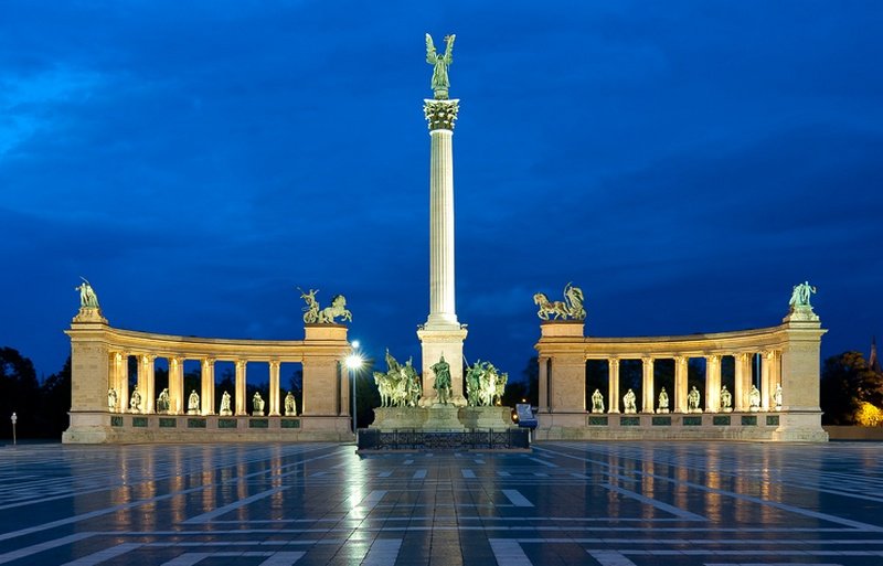 Massive construction of the square began at the turn of the 19th and 20th centuries. The first statue was erected in 1896, in connection with the 1000th anniversary of Hungarian statehood. She was called the Millennium Statue. This is a Corinthian style column on which stands the Archangel Gabriel. His figure was not chosen by chance. According to legend, it was he who convinced the sleeping king Istvan to accept Christianity and spread it throughout the country. At the foot of the 36-meter-high statue there is a monument to the seven Magyar leaders who crossed the Carpathians in 896. It should be noted that under the memorial slab there is an artesian well 971 meters deep, the thermal water of which is supplied to the Széchenyi and Dagali baths.