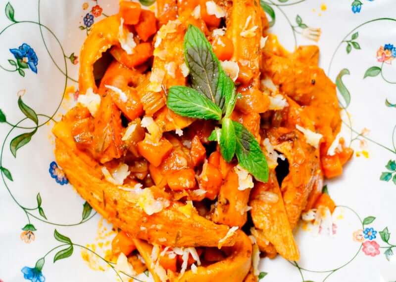 Trippa - ingredients: beef, pancetta, onion, carrot, celery, white wine, tomato puree, mint, pecorino cheese, salt, pepper: