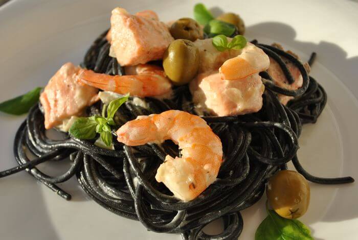 Pasta - Italians eat it almost every day. Ingredients: pasta (mostly spaghetti), sauce, chicken, mushrooms, seafood, vegetables, cheese:
