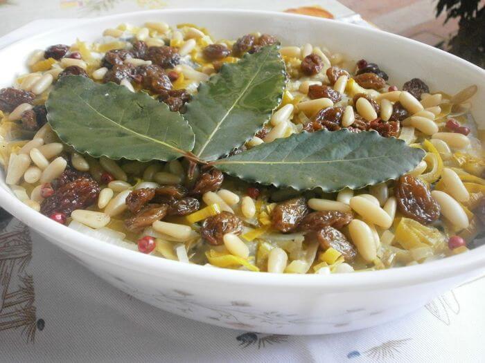 Sarde in saor - fried sardines or anchovies placed in wine vinegar for several days, and then raisins and cedar seeds are added to the marinade: